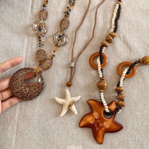 复古波西米亚海星吊坠串珠长款项链女高级感叠戴毛衣链民族风配饰