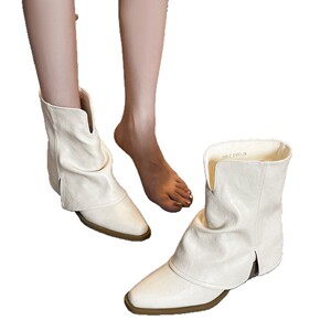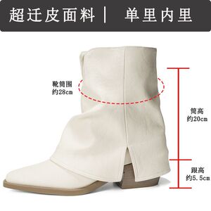 白色粗跟短靴女2025新款高跟瘦瘦靴尖头堆堆靴裤管夏款巨好看靴子