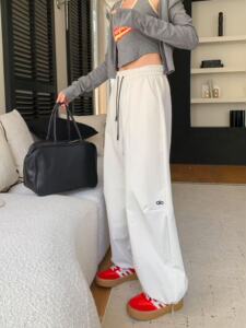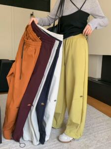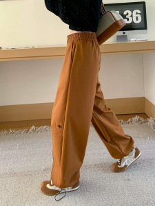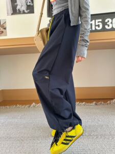 2025秋松紧腰拼接直筒显瘦休闲裤宽松百搭阔腿两穿工装裤一件代发