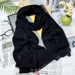 黑色基础款小梅花刺绣满幅点黑钻长巾围巾可包头