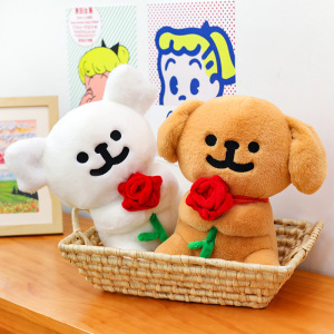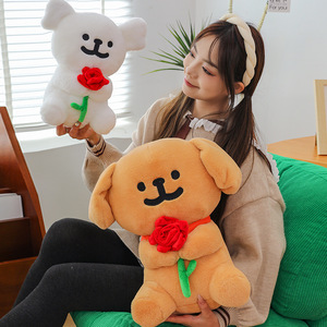 爆款跨境抱玫瑰花线条小狗毛绒公仔玩偶抱枕女朋友情人节生日礼物
