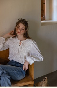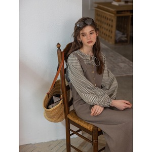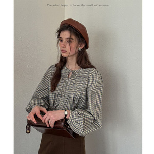 Dailyart“少女心事”法式松弛风琴褶灯笼袖长绒棉格子简约衬衫