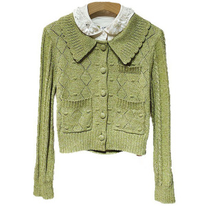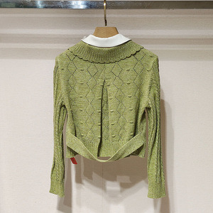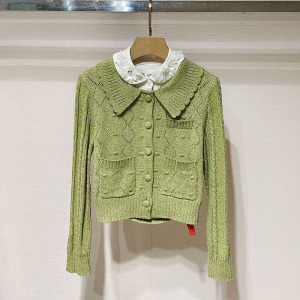 1件起批2025秋女装钉珠花朵衬衫领单排扣长袖针织开衫上衣S250633