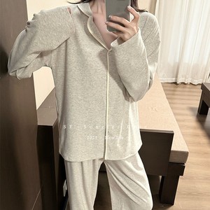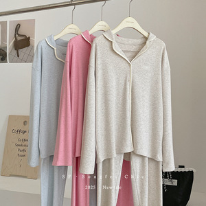撞色雪花绵羊绒翻领睡衣套装秋冬新款长袖宽松亲肤家居服两件套女