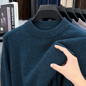 秋冬新款加厚百搭100%纯羊毛衫宽松休闲打底时尚舒适保暖毛衣男