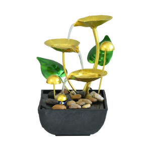 新品铁艺办公室家居室内简约装饰工艺品流水荷花摆件好运流水招财