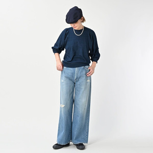 原工厂直供外贸服装45R麻蓝靛蓝8分袖蓬松T男女同款情侣麻蓝靛蓝T