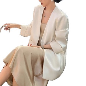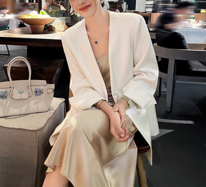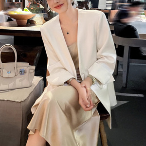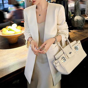 预售西装外套女春秋2025新款时尚宽松气质设计感缎面长袖上衣西服