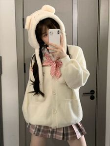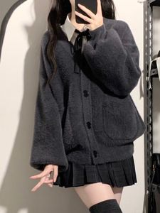 水貂绒开衫学院风毛茸茸减龄fufu春季宽松小个子针织毛衣jk外套女