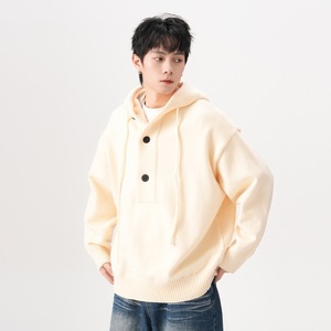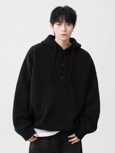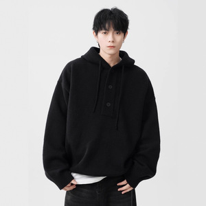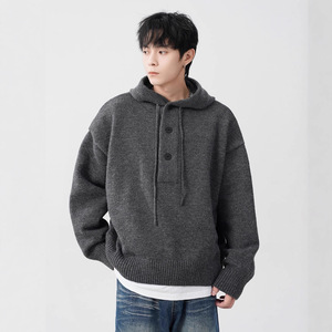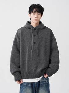 美式重磅灰色连帽毛衣男女秋冬潮牌高级感休闲针织衫宽松慵懒外套