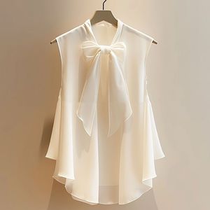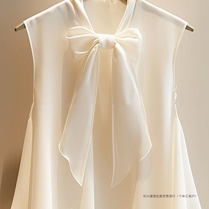 漂亮洋气无袖上衣女白色超仙高档雪纺小衫无袖蝴蝶结衬衫2025新款