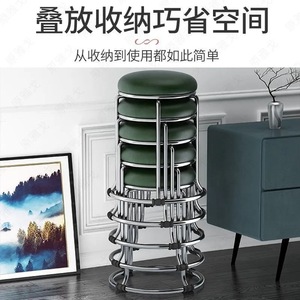 圆凳不锈钢凳子可叠放套凳铁艺椅子板凳加厚家用餐桌凳塑料凳加厚