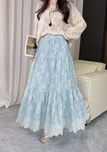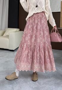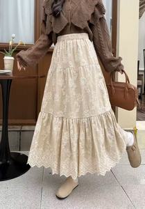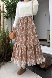 新中式刺绣花朵半身裙女秋季2025新款高腰大摆蛋糕裙长裙半裙伞裙