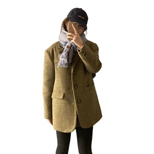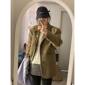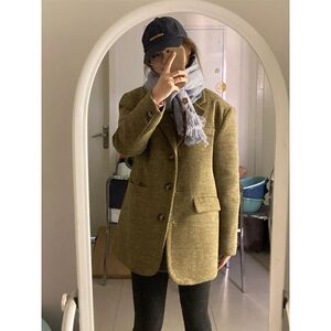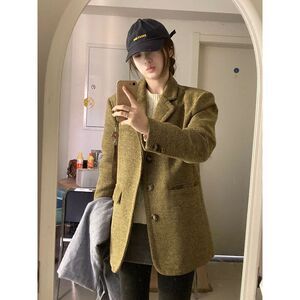 法式复古气质显瘦西装外套女2025秋冬新款宽松休闲斜条纹毛呢大衣