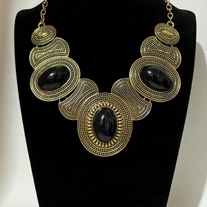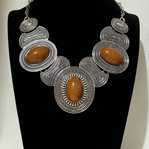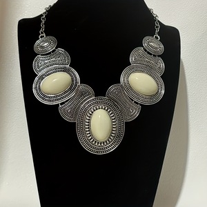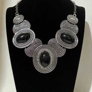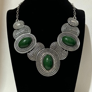 欧美复古波西米亚民族风椭圆绿松石合金项链