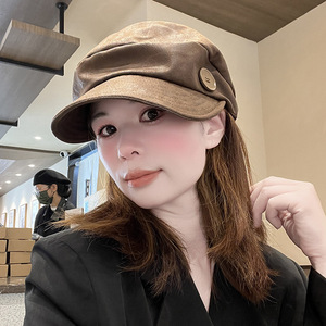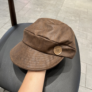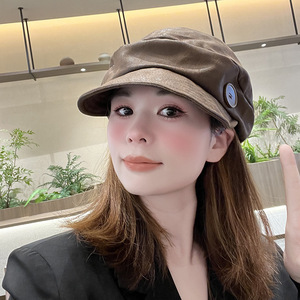 皮质八角帽日系复古贝雷帽女春秋小众文艺显脸小百搭报童帽画家帽