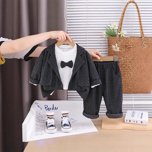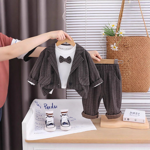 童装男童春秋套装男宝宝秋季2025简约竖条牛仔三件套宝宝秋季新款
