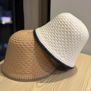 2025新款日系镂空针织水桶帽春秋季保暖百搭素颜显脸小盆帽渔夫帽