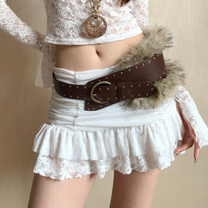 美式西部风铆钉毛绒拼接腰封女配裙子牛仔裤收腰宽版皮带重工配饰