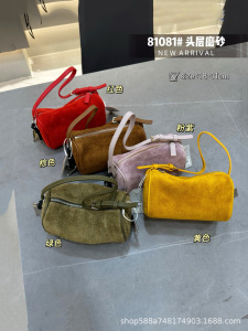 磨砂真皮圆筒包保龄球包包女时尚精致手拎笔筒包麂皮绒斜挎包小包