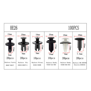 100PCS盒装汽车卡扣盒装100PCS组合套装尼龙卡子保险杠卡扣HE26