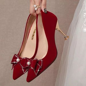 红色婚鞋春女秀禾中式服新娘鞋年春新款小众不累脚结婚高跟鞋