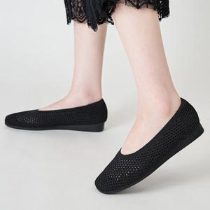 717-1新款坡跟单鞋2025亚马逊舒适百搭飞织透气妈妈鞋一件代发