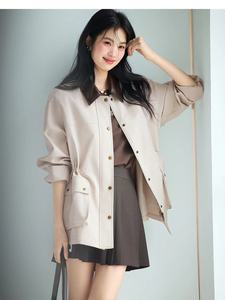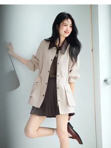 伊*L巴恩风撞色拼色皮领风衣外套2025秋季新款复古外套1G8911061