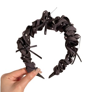 气质百搭褶皱波点发箍女高级感蝴蝶结头箍带齿防滑高颅顶发卡头饰