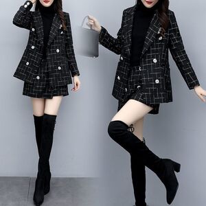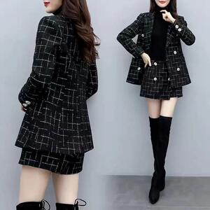 特大码胖mm秋冬名媛毛呢套装女300斤时尚短裙小香风外套两件套装