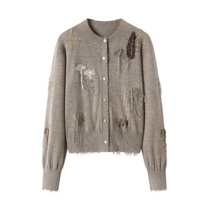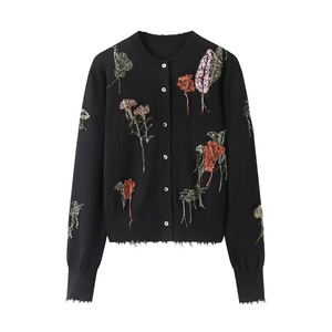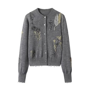 现货2025秋季新款气质休闲时髦钉珠流苏刺绣针织开衫女 5P8311090