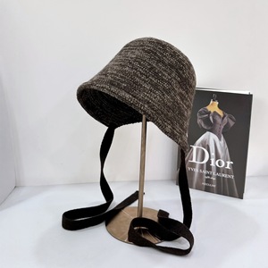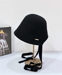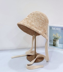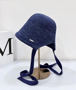 批发25年早秋新款针织渔夫帽子女韩版透气百搭遮阳显脸小系带盆帽
