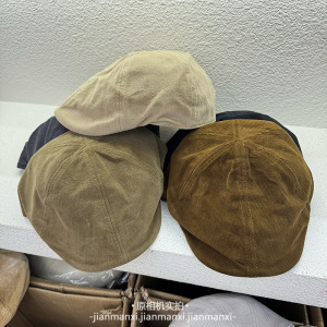 2025新款韩系棕色灯芯绒前进帽女秋冬复古文艺贝雷帽英伦报童帽子