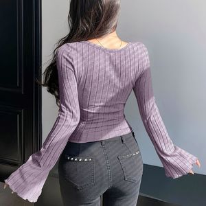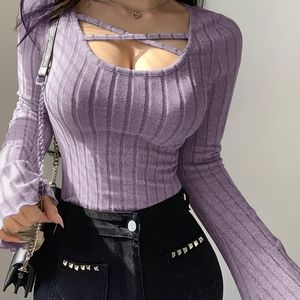 纯欲风设计感不规则长袖女秋冬高弹显瘦针织衫修身辣妹内搭