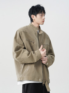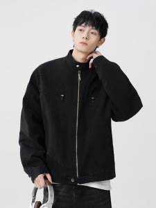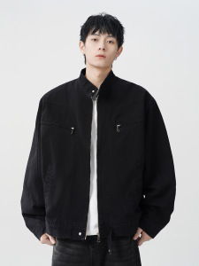 美式复古哈灵顿帆布短款夹克男女秋季潮高街痞帅cleanfit立领外套