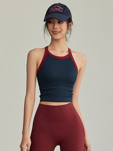 跨境爆款撞色款运动内衣训练健身瑜伽背心无缝一体式胸垫现货款
