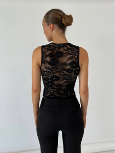 2025年秋季新品气质个性纯色低胸提花微透紧身显身材短款背心上衣