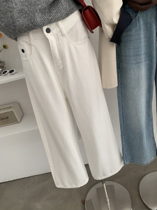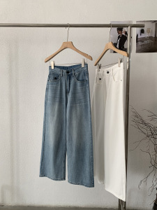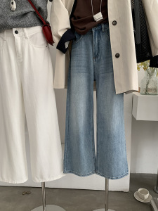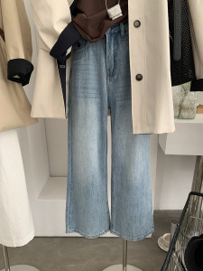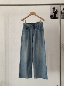 欧玛莱 韩版复古宽松直筒裤女秋季高腰百搭阔腿牛仔裤九分裤 4416