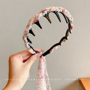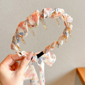 6#粉色小碎花齿梳飘带发箍