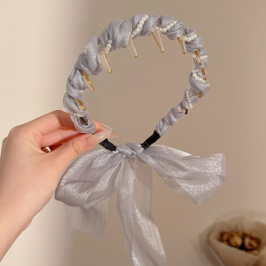 2#灰色珍珠发箍 飘带约50cm