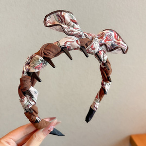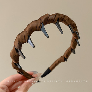 14#咖棕色大点点齿梳飘带发箍