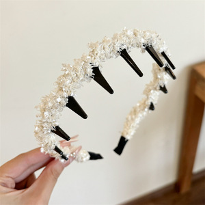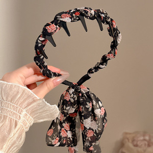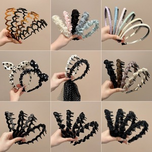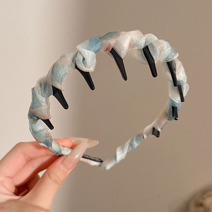 韩系高颅顶带齿波浪发箍女编发飘带头箍日常外戴洗脸专用发卡头饰