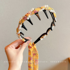8#黄色小碎花齿梳飘带发箍
