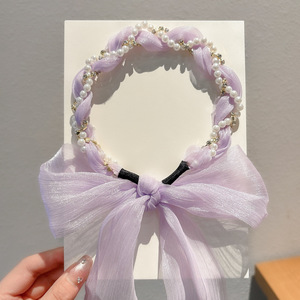 19#碎花飘带发箍【菊粉】