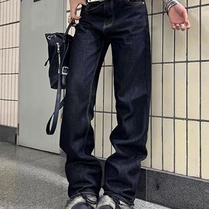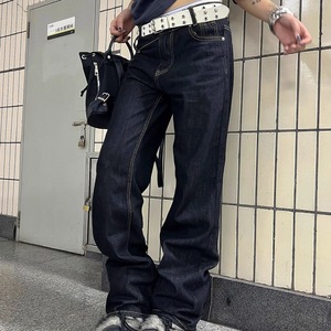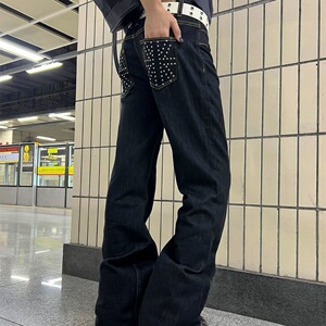 大码美式复古辣妹低腰不规则重工钉珠牛仔裤女设计感直筒显瘦长裤