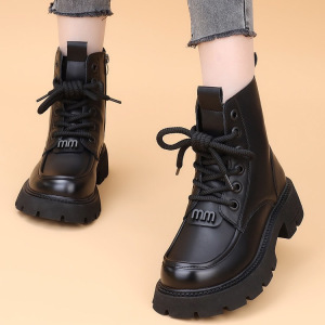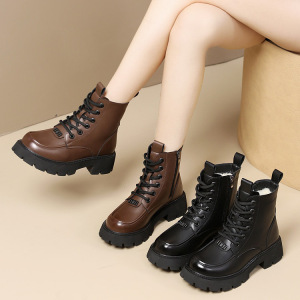 软皮加厚毛绒雪地靴女冬季复古马丁靴加绒厚底棉鞋防寒保暖棉靴女