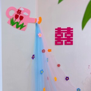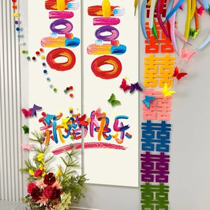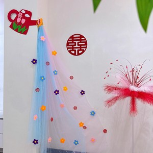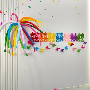 结婚婚房布置喜字套装浪漫网纱花梦幻多巴胺彩色新娘晨袍拍照背景