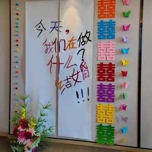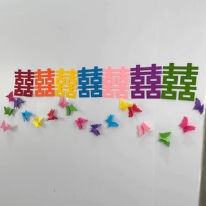 25cm悬浮彩色7囍【彩色方形囍字】彩色蝴蝶串