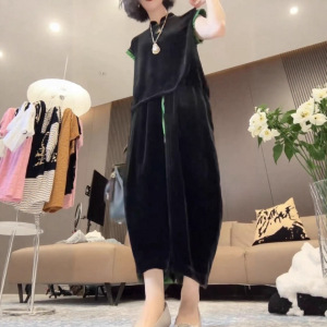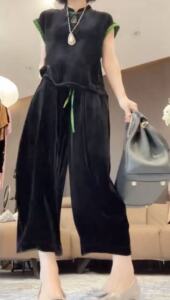 25880新大爱美依缘2025新款时尚丝绒短袖上衣阔腿裤套装洋气显瘦
