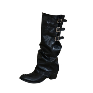 2025秋冬新款两穿皮带扣长靴朋克风西部牛仔靴女复古机车靴高筒靴